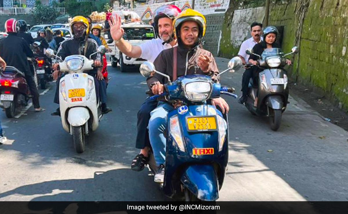 मिजोरम कांग्रेस के आधिकारिक एक्स अकाउंट से भी स्कूटर पर सवार राहुल गांधी की तस्वीरों को साझा किया गया है.