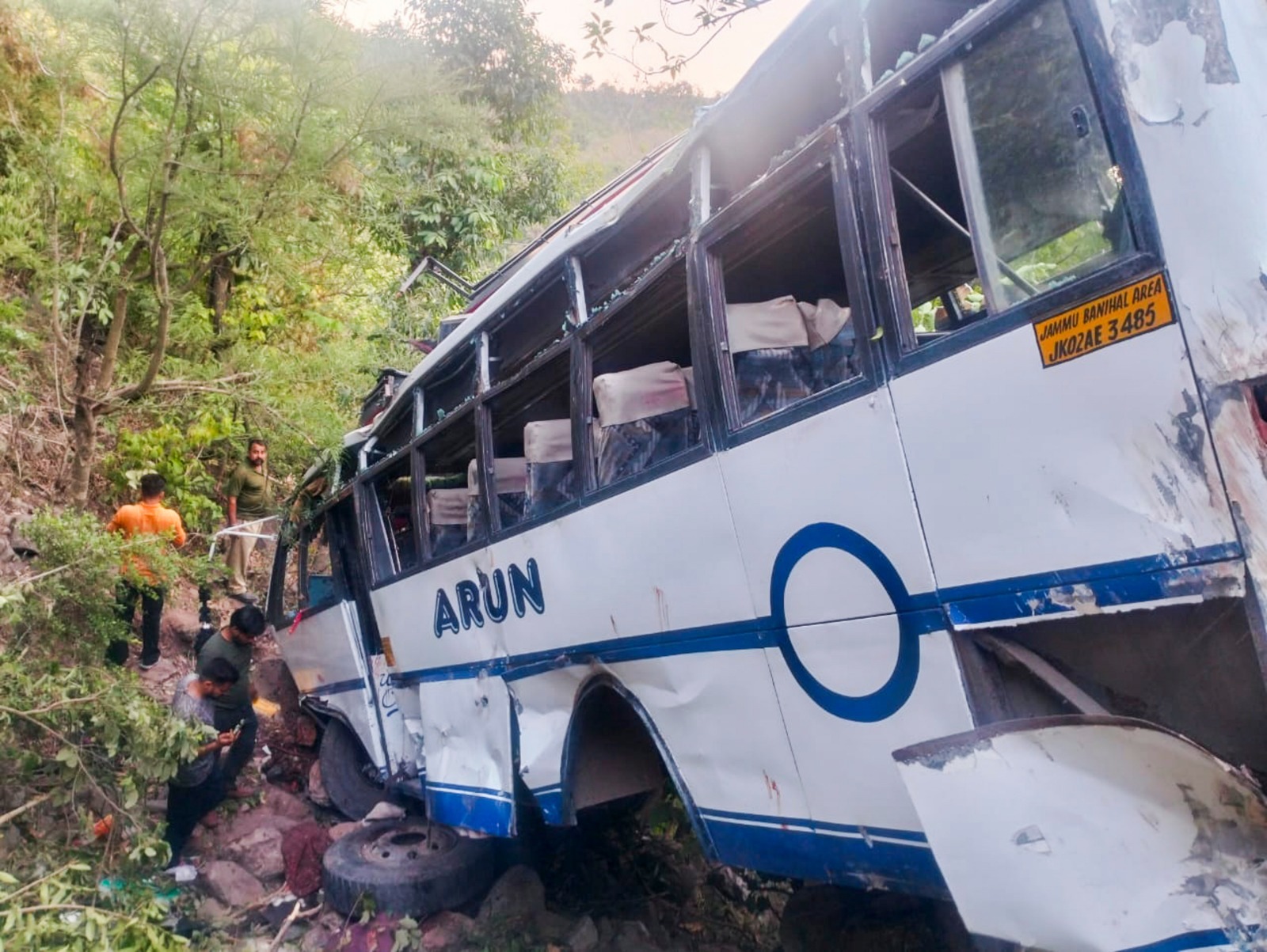 जम्मू-कश्मीर के रियासी जिले में तीर्थयात्रियों को ले जा रही बस पर रविवार को आतंकवादियों ने हमला किया, जिसमें 10 लोगों की मौत हो गई. बस शिवखोड़ी मंदिर से कटरा लौट रही थी. रास्ते में आतंकवादियों ने उस पर गोलीबारी शुरू कर दी. हमले के बाद बस खाई में गिर गई. उसमें लगभग 50 लोग मौजूद थे.