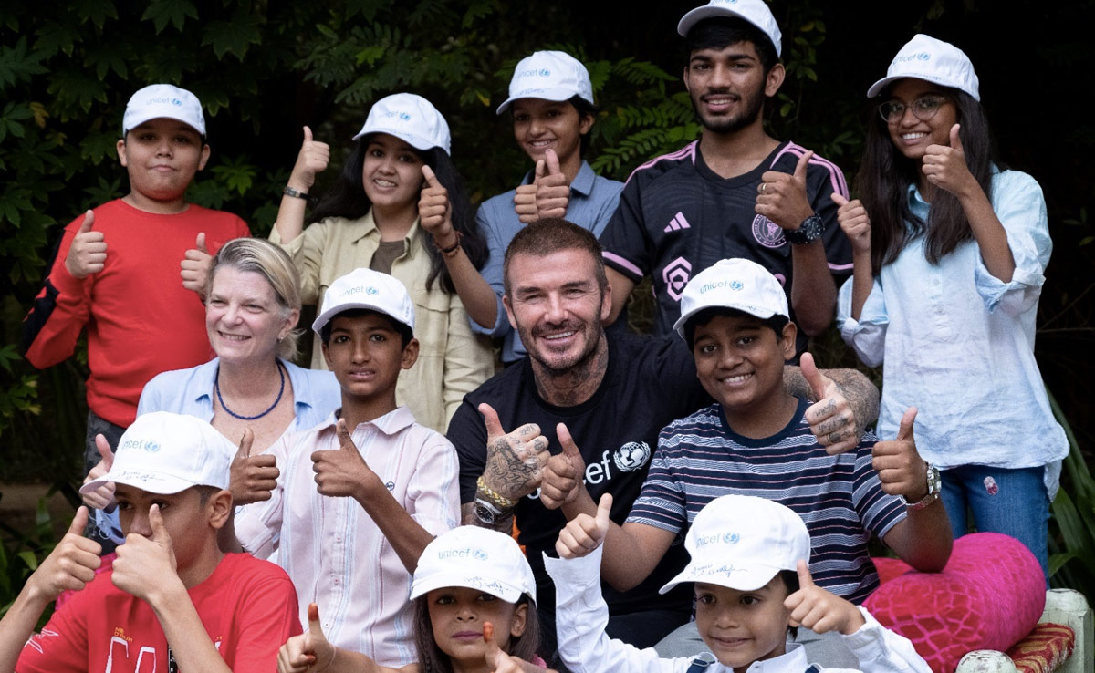 यूनिसेफ के सद्भावना राजदूत प्रसिद्ध फुटबाल खिलाड़ी डेविड बेकहम ने इस सप्ताह बच्चों और किशोरों से मिलने के लिए भारत की यात्रा की. बेकहम से मिलने वालों में वे लड़कियां जो अपने समुदायों में परिवर्तन और नवाचार ला रही हैं, और वे युवा महिलाएं जिन्होंने बाधाओं को पार करके लिंग भेद मिटाने में मदद की है, भी शामिल हैं.