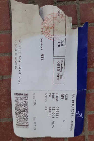 सहारनपुर से गिरफ्तार डॉ आदिल अहमद का वो बोर्डिंग पास जब वो 31 अक्टूबर को श्रीनगर से दिल्ली आया था.