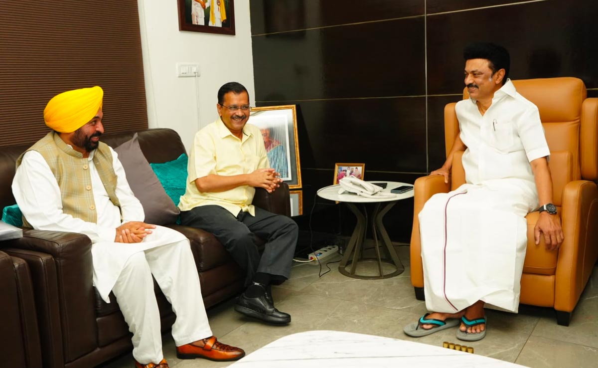 दिल्ली के सीएम अरविंद केजरीवाल ने प्रेस कॉन्फ्रेंस में कहा, "हमने आज उनसे (एमके स्टालिन) दिल्ली सरकार के खिलाफ केंद्र के अध्यादेश पर चर्चा की. यह अलोकतांत्रिक और असंवैधानिक है. सीएम स्टालिन ने आश्वासन दिया है कि डीएमके, आम आदमी पार्टी और दिल्ली के लोगों के साथ खड़ी रहेगी." इस दौरान पंजाब के मुख्यमंत्री भगवंत मान, आम आदमी पार्टी (AAP) के सांसद संजय सिंह, आप नेता राघव चड्ढा और दिल्ली सरकार में मंत्री आतिशी भी मौजूद रहीं. केजरीवाल 2 जून को झारखंड के मुख्यमंत्री हेमंत सोरेन से भी रांची में मुलाकात करेंगे.