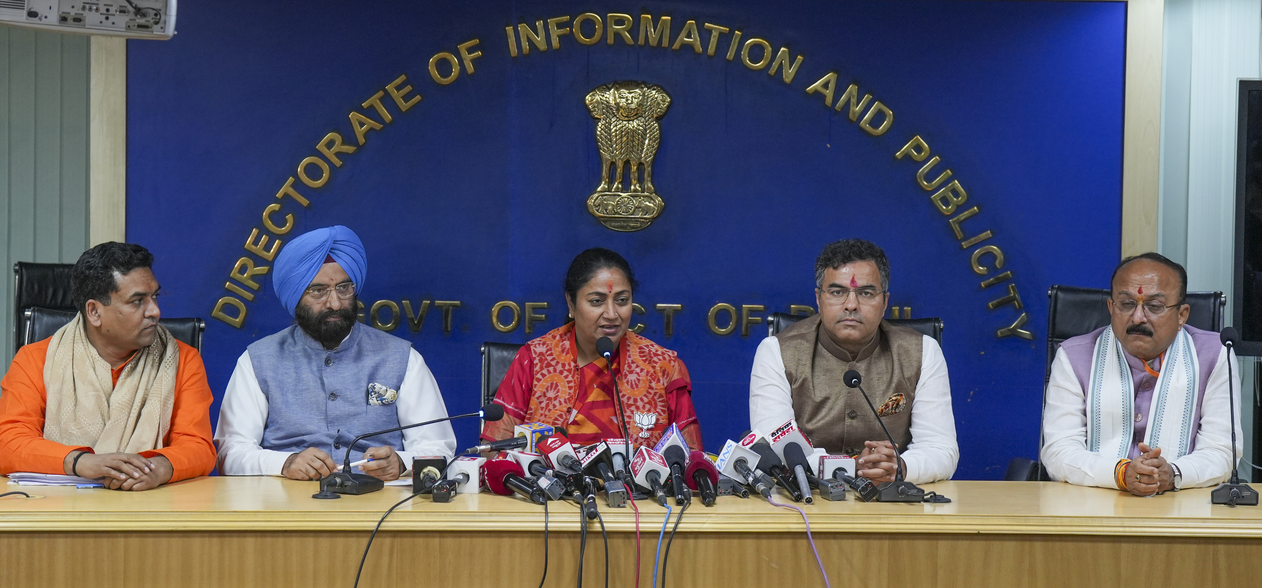 उपराज्यपाल वी.के. सक्सेना ने सबसे पहले मुख्यमंत्री रेखा गुप्ता को शपथ दिलाई. इसके बाद क्रमशः प्रवेश वर्मा, आशीष सूद, मनजिंदर सिंह सिरसा, कपिल मिश्रा, पंकज कुमार सिंह और रविंद्र इंद्राज सिंह ने शपथ ली.