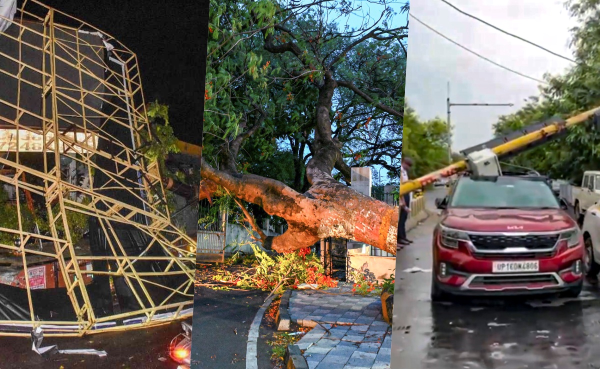 - नोएडा और गाजियाबाद में भी तबाही: नोएडा के सेक्टर 9 में पेड़ गिरने से वाहनों को नुकसान पहुंचा, और डीएम चौक पर एक ट्रैफिक पोल गिर गया. ग्रेटर नोएडा वेस्ट में एपेक्स गोल्फ एवेन्यू सोसाइटी का मुख्य गेट ढह गया, और आजनारा होम्स में एक पेड़ गिरने से चार कारें क्षतिग्रस्त हो गईं.