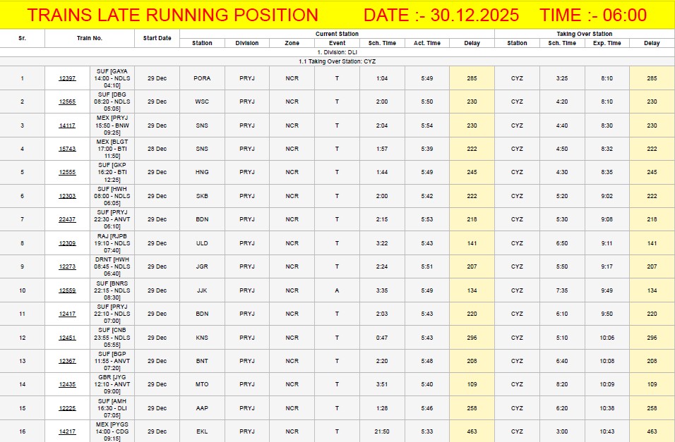 - रेलवे बोर्ड से ट्रेनों की लगातार निगरानी और तुरंत कार्रवाई