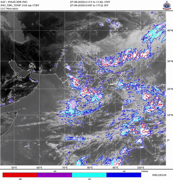 - IMD ने 28 से 30 अगस्त तक ओडिशा, विदर्भ, छत्तीसगढ़, मध्य प्रदेश, पश्चिम बंगाल में भारी बारिश की चेतावनी दी है.
