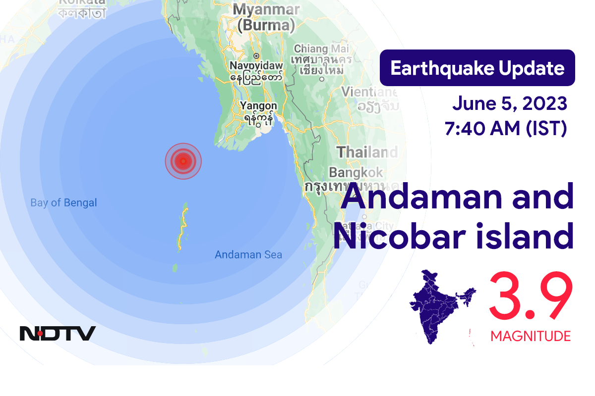 नेशनल सेंटर फॉर सिस्मोलॉजी के मुताबिक, सोमवार सुबह Diglipur में Andaman and Nicobar island के निकट रिक्टर पैमाने पर 3.9 तीव्रता वाले भूकंप के झटके महसूस किए गए.