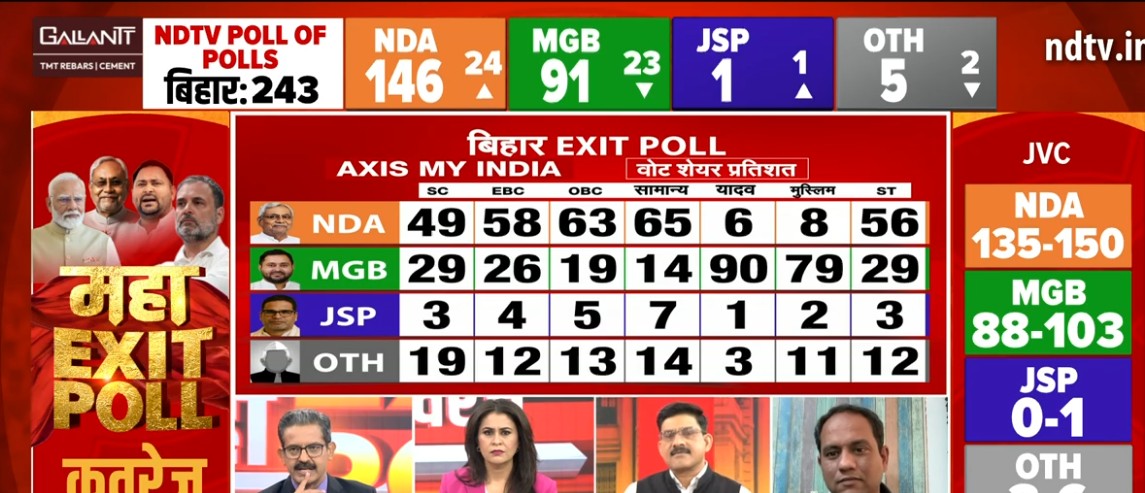 पहले के एग्जिट पोल्स में एनडीए सबसे आगे