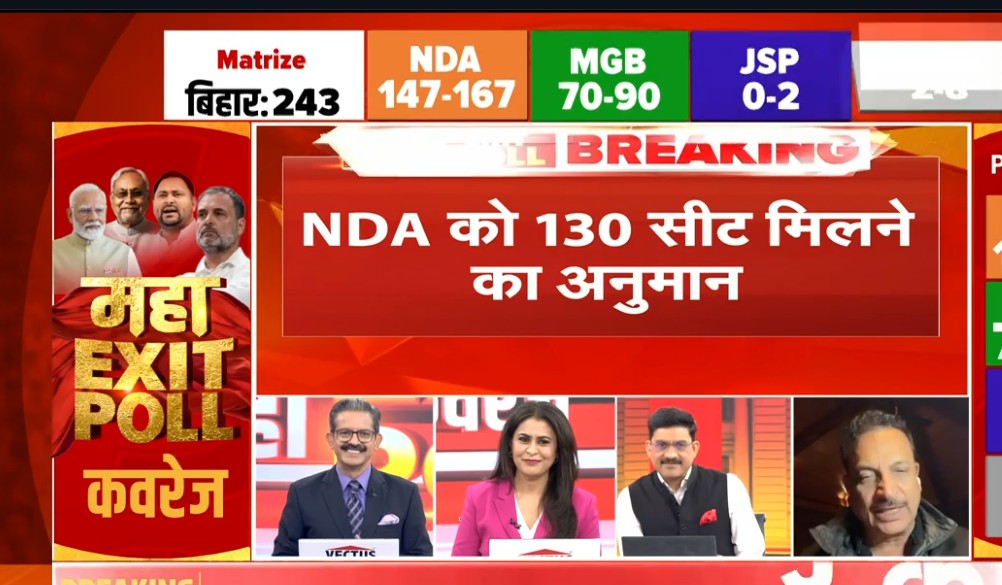 - मैट्रिज के एग्जिट पोल- विपक्षी महागठबंधन को 70 से 90 के बीच सीटें मिलने का अनुमान लगाया गया है.