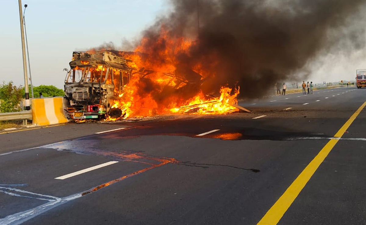 सूत्रों के मुताबिक यह ट्रक हरियाणा से प्लाई लादकर पटना जा रहा था. लेकिन जैसे ही ट्रक रानीपुरा थाना क्षेत्र के पूर्वांचल एक्सप्रेसवे पर शमशाबाद के पहुंचा तो अचानक ही इसका टायर फट गया और ट्रक अनियंत्रित होकर डिवाइडर से टकरा गया और उसमें आग लग गई.