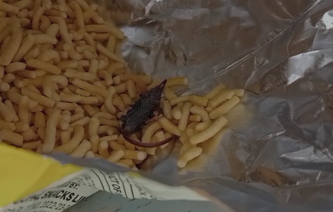 जानकारी के मुताबिक, लोकप्रिय ब्रांड गोपाल नमकीन के पैकेट में एक मरा हुआ चूहा मिला. लड़की के पिता ने कहा कि हमने गोपाल नमकीन का एक पैकेट खरीदा था. हमने अपनी बेटी को वह नमकीन खिलाई. मेरी बेटी ने नमकीन खाने के बाद उल्टियां करनी शुरू कर दी. हमें इसके पैकेट में एक मरा हुआ चूहा मिला.