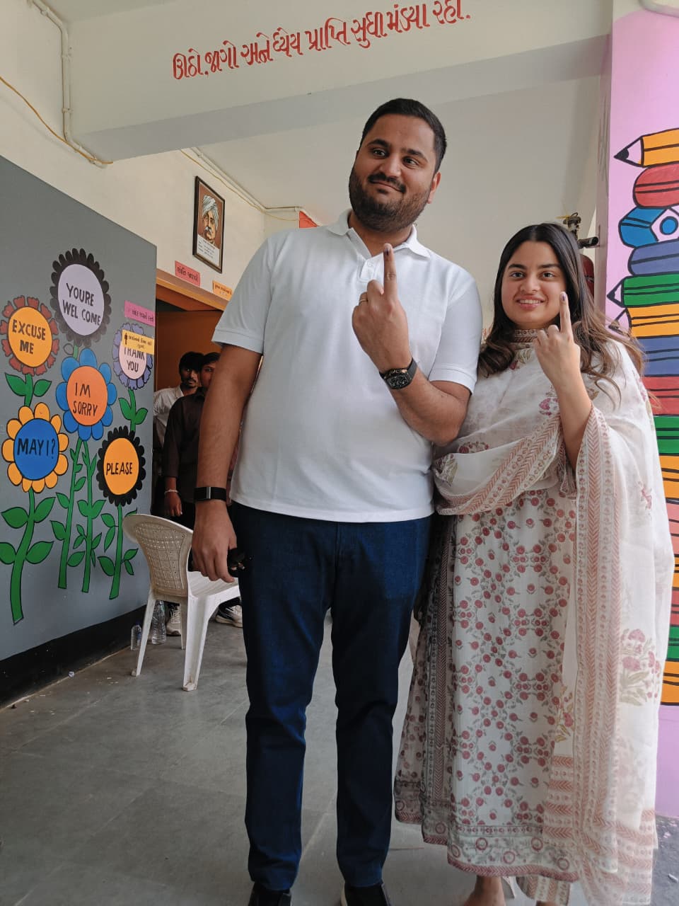 शादी के बंधन में बंधे कपल ने मेघराज नगर में वोट डाला,इस दौरान पति-पत्नी ने लोगों से अपील भी की है.सबसे पहले वोट डालकर अपनी शादी को साबित किया. मेघराज के पार्थ सुथार और दीया सुथार ने वोट डाला है.