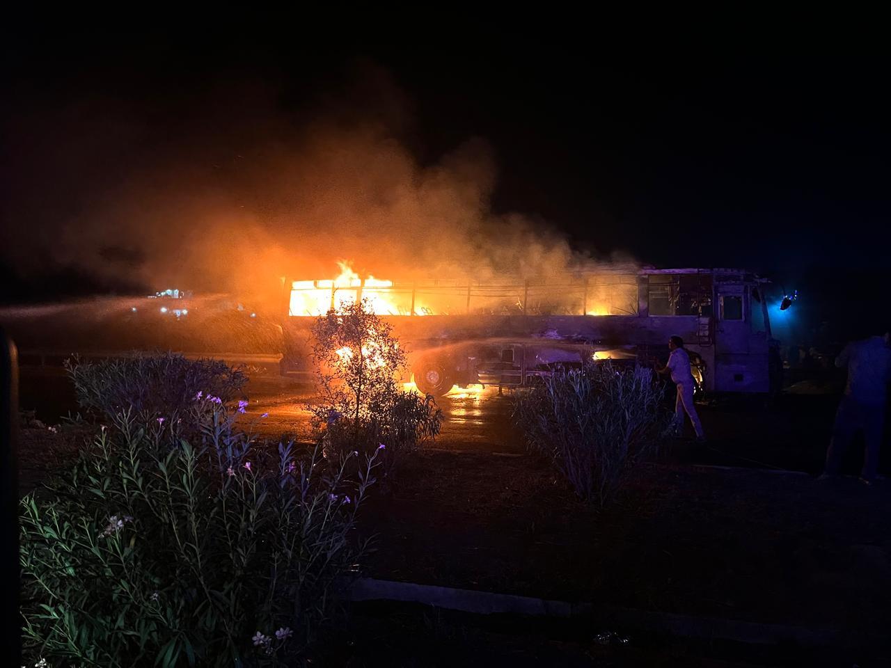 बस में आग की लपटें दिखाई दीं