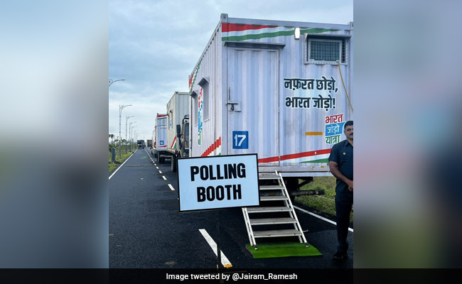 जयराम रमेश ने ट्वीट कर कहा, "यह संगनाकल्लू में #भारत जोड़ो यात्रा शिविर का मतदान केंद्र है, जो सुबह 10 बजे खुलेगा. यह बैठक कक्ष कंटेनर है, जिसे कांग्रेस अध्यक्ष चुनाव के लिए मतदान केंद्र में बदल दिया गया है."