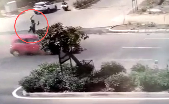 दिल्ली के पास गाजियाबाद के वेव सिटी से एक हैरान करने वाला वीडियो सामने आया है. जानकारी के अनुसार शुक्रवार को एक कार की चपेट में आने से एक व्यक्ति गंभीर रूप से घायल हो गया, दुर्घटना का भीषण वीडियो सीसीटीवी में कैद हो गया. वीडियो में देखा जा सकता है कि एक बाइक सवार जब सड़क पार करने के लिए खड़ा था तब ही अचानक उसके बाईं ओर से एक कार ने उसे जोरदार टक्कर मार दी.