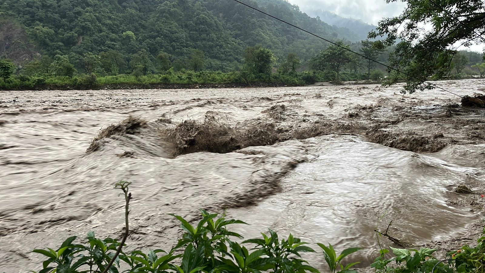 देहरादून के मालदेवता क्षेत्र में सौंग नदी का रौद्र रूप