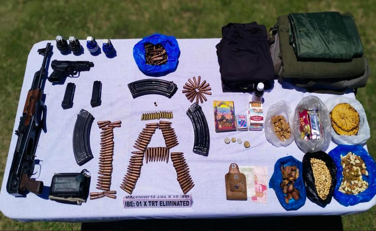 आतंकियों से बरामद सामान में से एक एके 47 राइफल, 175 राउंड वाली तीन एके मैगजीन, एक 9 एमएम पिस्तौल, 15 राउंड वाली दो मैगजीन, चार हैंड ग्रेनेड, संचार उपकरण, बड़ी मात्रा में खाने-पीने की चीजें और जीवनयापन के लिए कपड़े शामिल हैं.