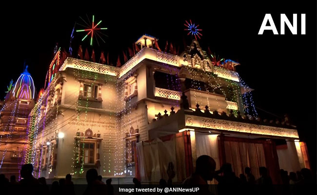 जन्माष्टमी के मौके पर श्री कृष्णभूमि मथुरा में रोशनी से जगमग हुआ मंदिर