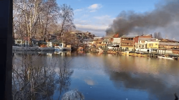 - डल लेक के किनारे स्थित गेस्ट हाउस में भीषण आग लग गई है, जिसकी लपटें दूर से दिखाई दे रही हैं