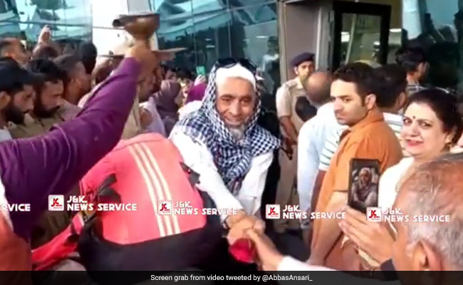 अंसारी ने एक वीडियो ट्वीट किया है. साथ ही उसके साथ लिखा, "हज करके लौटे हाजी लोग श्रीनगर एयरपोर्ट से निकले तो कश्मीरी पंडित भाईयों ने नात पढ़ते हुए आरती उतारकर स्वागत किया और मुबारकबाद दी. इस मुहब्बत को राजनीति की नजर ना लगे."