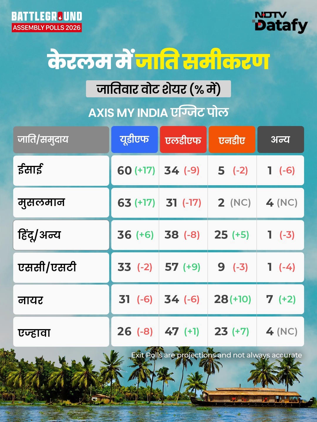 Kerala Exit Poll Results 2026 LIVE: केरल में UDF सबसे आगे दिख रही, पहला एग्जिट पोल सामने आया
