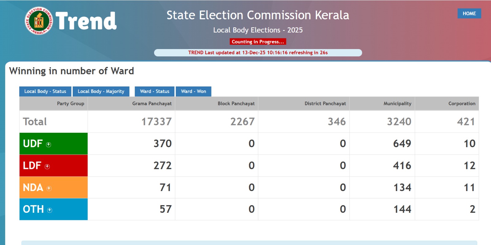 Kerala local body Election 2025 Result LIVE Updates...