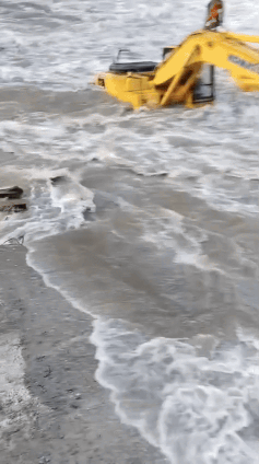 वायरल वीडियो में देखा जा सकता है कि पानी के अचानक और तेज बहाव के बीच पीली रंग की पोकलैंड मशीन नदी में लगभग पूरी तरह डूब चुकी है और ऑपरेटर मशीन के अगले हिस्से पर चढ़कर अपनी जान बचाने की कोशिश कर रहा है. पानी का बहाव इतना तेज था कि वह अपनी जगह से हिल भी नहीं पा रहा था. गनीमत यह रही कि घटना के समय बड़ी संख्या में मजदूर मौके पर मौजूद थे. शुरुआत में, कुछ मजदूरों ने सीढ़ी लेकर मदद के लिए भागना शुरू किया, लेकिन पानी के बहाव और दूरी के कारण सीढ़ी फंसे हुए ऑपरेटर तक नहीं पहुंच सकी. तभी, दूसरी ओर से कुछ मजदूरों ने एक बड़ा, मोटा पाइप रस्सी की तरह इस्तेमाल करते हुए पोकलैंड मशीन पर फेंका. पोकलैंड ऑपरेटर ने हिम्मत दिखाते हुए, बहते पानी के बीच उस पाइप को कसकर पकड़ लिया.