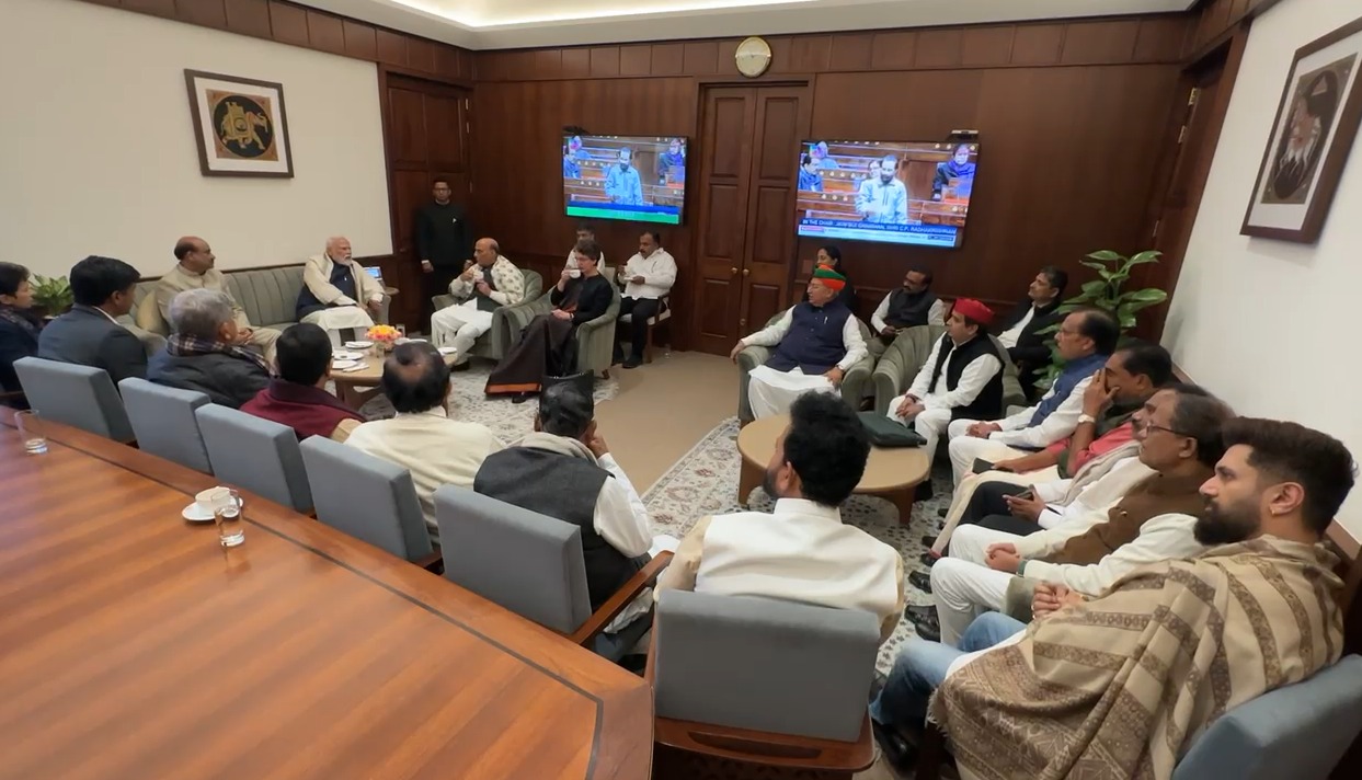 संसद के शीतकालीन सत्र में सत्ता पक्ष और विपक्ष के बीच गरमा-गरम बहस और विरोध के बीच आज दोनों सदनों की कार्यवाही अनिश्चितकाल के लिए स्थगित कर दी गई. इसके बाद लोकसभा स्पीकर ओम बिरला के कक्ष की एक तस्वीर आती है जहां पीएम नरेंद्र मोदी, रक्षा मंत्री राजनाथ सिंह और प्रियंका गांधी बैठी दिखाई दे रही हैं. वायनाड से फर्स्ट टाइम सांसद प्रियंका के अलावा सपा से धर्मेंद्र यादव, एनसीपी शरद पवार गुट से सुप्रिया सुले और डी राजा भी इस बैठक में मौजूद थे.