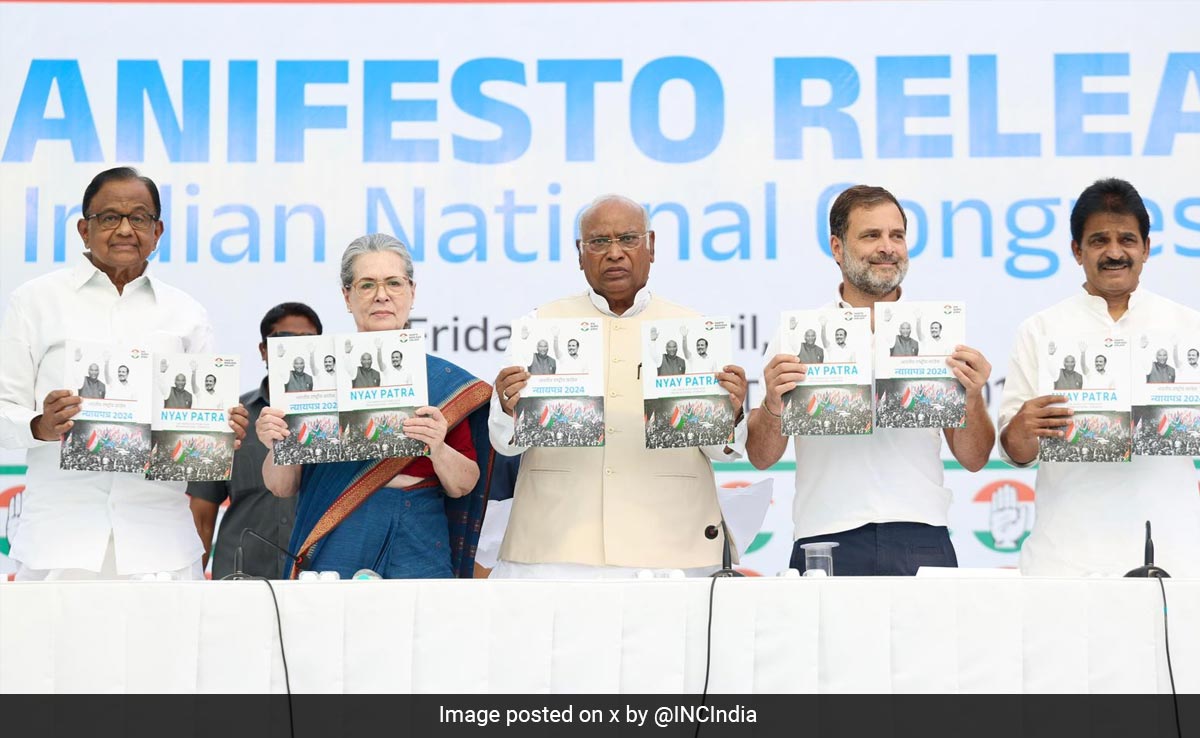 पार्टी ने अपने घोषणा पत्र को ‘न्याय पत्र' नाम दिया है. कांग्रेस अध्यक्ष मल्लिकार्जुन खरगे ने कहा कि इस घोषणा पत्र में भविष्य के शानदार भारत की तस्वीर नजर आती है. कांग्रेस के पूर्व अध्यक्ष राहुल गांधी ने कहा कि यह चुनाव, संविधान और लोकतंत्र को नष्ट करने का प्रयास करने वालों और इन्हें बचाने की कोशिश करने वालों के बीच होने जा रहा है.