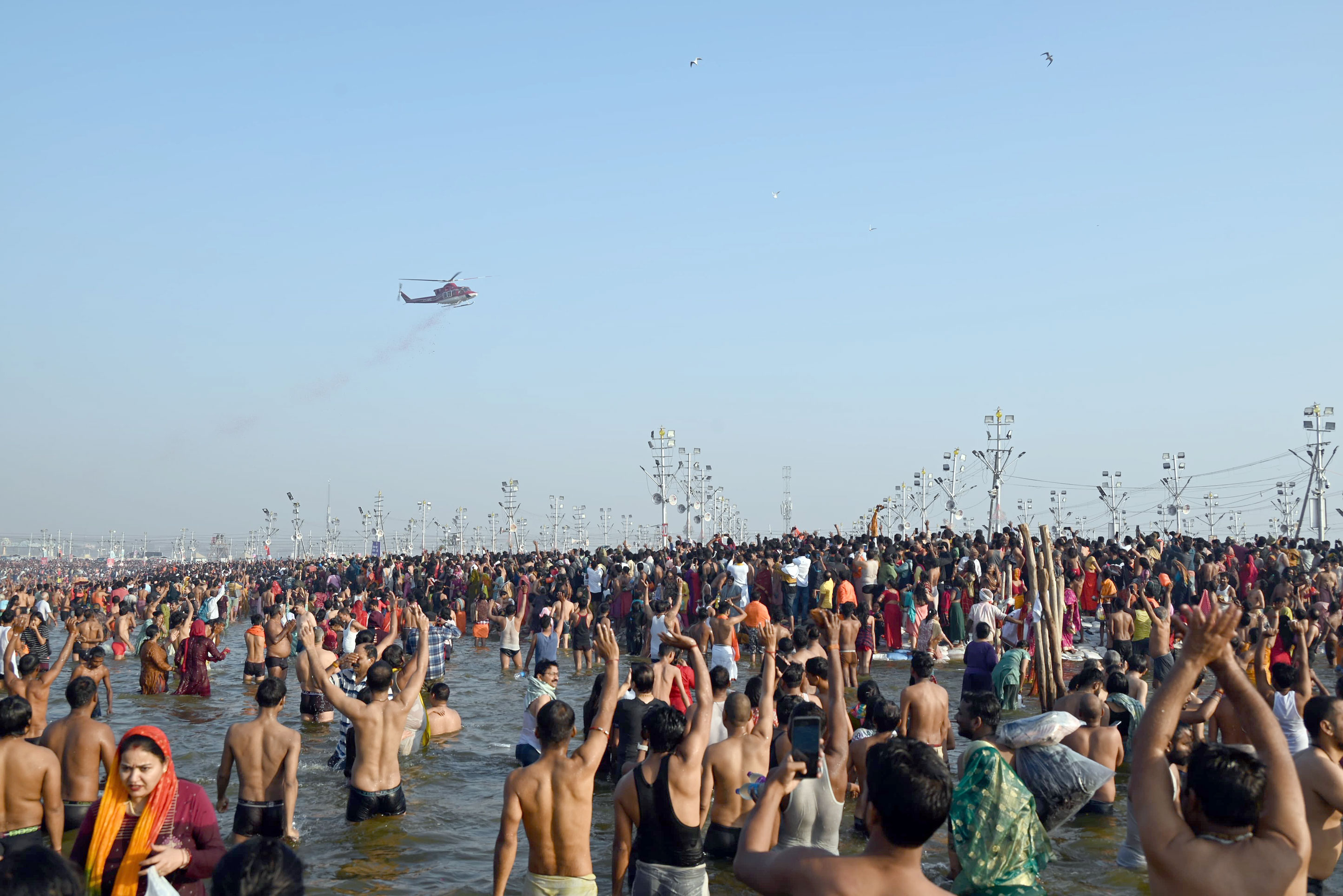 गुरुवार दोपहर 2 बजे तक प्रयागराज संगम क्षेत्र में 85 लाख 73 हजार श्रद्धालु डुबकी लगा चुके हैं. 13 जनवरी से अब तक यहां 56.75 करोड़ श्रद्धालु स्नान कर चुके हैं. रविवार को छुट्टी के दिन संगम क्षेत्र में भारी भीड़ जुट रही है. पिछले सप्ताह में शनिवार, रविवार, सोमवार को प्रयागराज में श्रद्धालुओं के जनसैलाब से पूरा शहर भीषण जाम में फंस गया था.