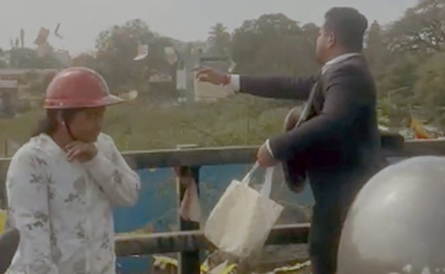 बेंगलुरु के केआर मार्केट फ्लाईओवर से 10 रूपये के नोटों को उछालने का हैरत में डाल देना वाला मामला सामने आया है. केआर मार्केट सिग्नल के पास फ्लाई ओवर से एक अंजान आदमी ने फ्लाईओवर पर चढ़कर नोट उछाले. नोटों को गिरता देख कुछ लोग नोटों को लूटना शुरू कर दिया. जब तक पुलिसकर्मी फ्लाई ओवर के ऊपर चढ़कर जाते तब तक वो व्यक्ति वहां से भाग गया.