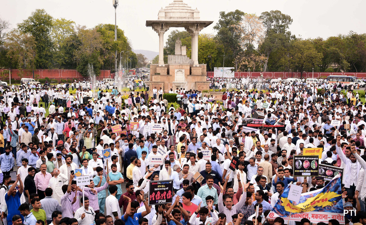 ऑल राजस्थान इन सर्विस डॉक्टर्स एसोसिएशन ने मंगलवार को आंदोलनरत डॉक्टरों के समर्थन में बुधवार को एक दिवसीय हड़ताल की घोषणा की. एसोसिएशन के महासचिव डॉ. शंकर बामनिया ने कहा कि आरटीएच विधेयक के खिलाफ निजी चिकित्सकों के आंदोलन के समर्थन में 15,000 से अधिक कार्यरत (सरकारी) डॉक्टर एक दिन के सामूहिक अवकाश पर रहकर काम का बहिष्कार करेंगे. इनके साथ ही मेडिकल कॉलेज के रेजिडेंट डॉक्टर भी काम का बहिष्कार करेंगे. उन्होंने कहा, 'आंदोलन के समर्थन में सभी डॉक्टर सामूहिक अवकाश पर रहेंगे.' उन्होंने कहा कि आपातकालीन सेवाएं इससे प्रभावित नहीं होंगी.