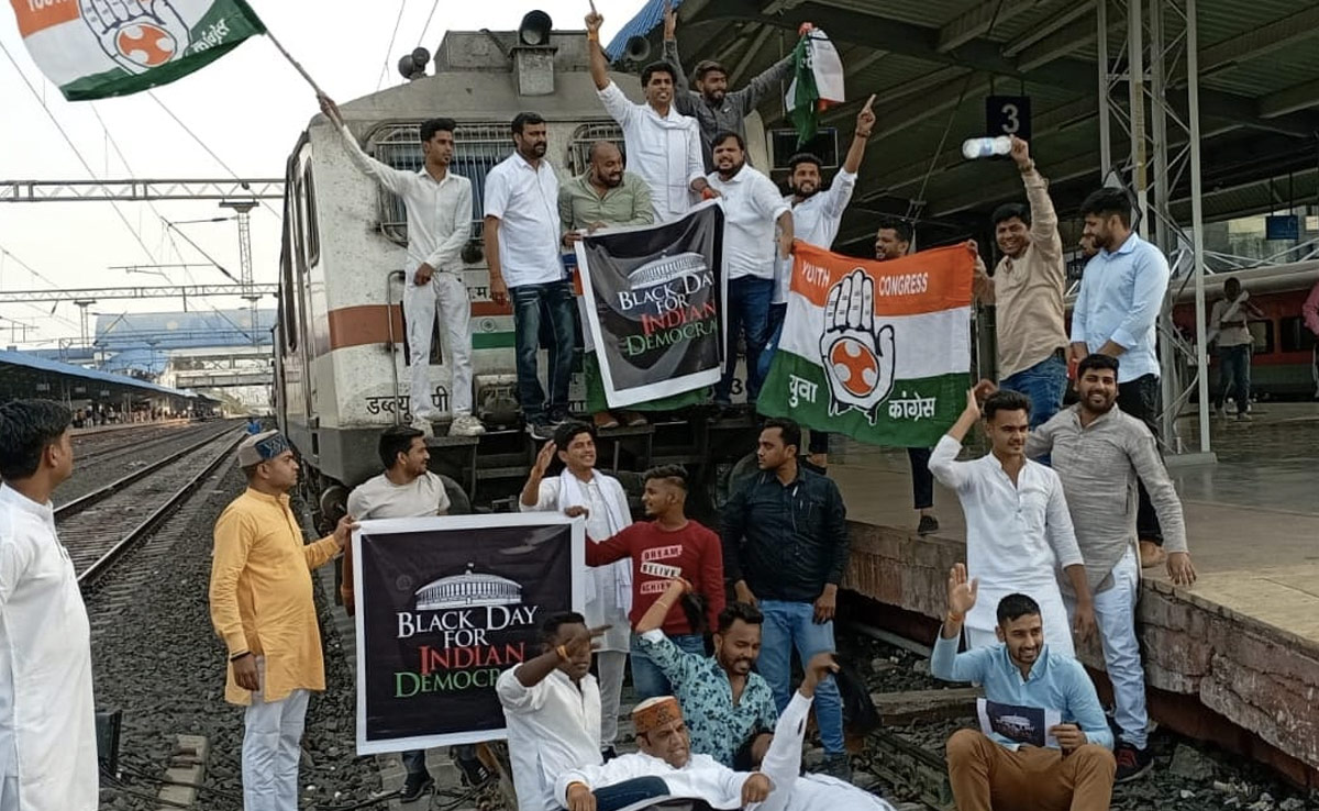 कांग्रेस नेता राहुल गांधी (Rahul Gandhi) की संसद सदस्यता शुक्रवार दोपहर करीब 2.30 बजे रद्द कर दी गई. वह केरल के वायनाड से लोकसभा सदस्य (Loksabha Member) थे. लोकसभा सचिवालय ने नोटिफिकेशन जारी कर इस बात की जानकारी दी है. राहुल गांधी की लोकसभा सदस्यता खत्म होने के बाद मध्य प्रदेश में भी सियासी सरगर्मी तेज हो गई. कांग्रेस कार्यकर्ता इस फैसले के खिलाफ सड़कों पर उतर आए. मध्य प्रदेश युवा कांग्रेस अध्यक्ष डॉ. विक्रांत भूरिया और कांग्रेस कार्यकर्ताओं ने रानी कमलापति स्टेशन पर राहुल गांधी की संसद सदस्यता रद्द करने के विरोध में दक्षिण सुपरफास्ट ट्रेन को रोक दी. हालांकि, पुलिस ने दखल देकर किसी तरह मामले को शांत कराया.