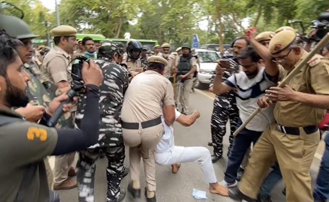 रविवार शाम को दिल्ली पुलिस ने मार्च को इजाजत नहीं देने का फैसला लिया था और इसके लिए सांप्रदायिक माहौल और कानून-व्यवस्था की स्थिति और वीआईपी मूवमेंट का हवाला दिया था. कांग्रेस की अपील के बावजूद दिल्ली पुलिस ने मंजूरी नहीं दी. दिल्ली पुलिस की कार्रवाई सुबह ही शुरू हो गई. कांग्रेस कार्यकर्ताओं को बलपूर्वक हटाए जाने की कवायद के बीच उनकी नारेबाजी के वीडियो सामने आते रहे. उन्हें बस में बिठाकर दूसरे स्थानों पर ले जाया गया. इनमें से एक वीडियो बाद में सामने आया, जिसमें 59 साल के वेणुगोपाल को बलपूर्वक पुलिसकर्मी उठाकर ले जाते दिखे और उन्हें बस में बिठाया.