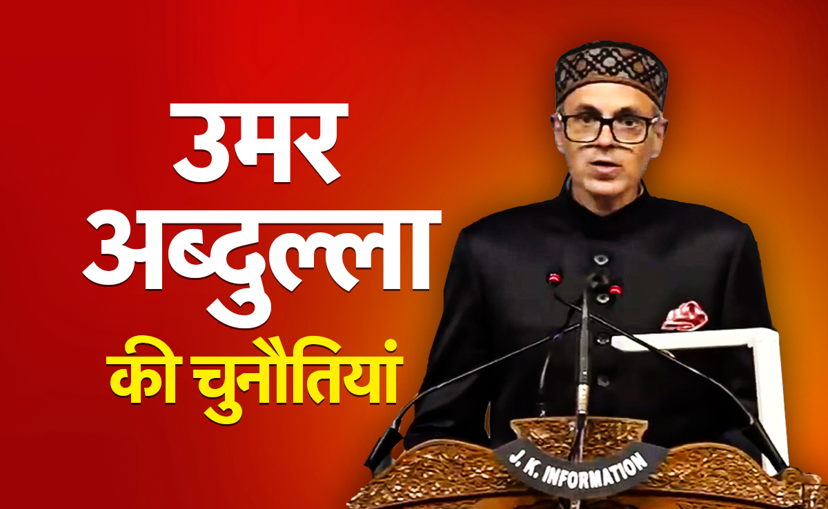नेशनल कॉन्फ्रेंस के नेता उमर अब्दुल्ला ने मुख्यमंत्री पद की शपथ ले ली है.उन्हें उपराज्यपाल मनोज सिन्हा ने पद और गोपनीयता की शपथ दिलाई.उमर अब्दुल्ला केंद्र शासित राज्य जम्मू कश्मीर के पहले मुख्यमंत्री हैं. नेशनल कॉन्फ्रेंस की गठबंधन सहयोगी कांग्रेस उमर अब्दुल्ला सरकार में शामिल नहीं हुई है. कांग्रेस उमर की सरकार को बाहर से समर्थन दे रही है. उमर अब्दुल्ला के साथ पांच और मंत्रियों ने शपथ ली है.नौशेरा में बीजेपी के प्रदेश अध्यक्ष रविंद्र रैना को हराने वाले सुरेंद्र कुमार चौधरी को उपमुख्यमंत्री बनाया गया है. इस तरह से नेशनल कॉन्फ्रेंस ने हिंदू-मुस्लिम के बीच संतुलन बनाने की कोशिश की है. उमर अब्दुल्ला ने ऐसे समय मुख्यमंत्री पद की शपथ ली है, जब जम्मू कश्मीर कई तरह की चुनौतियों का सामना कर रहा है. आइए जानते हैं कि उमर अब्दुल्ला की चुनौतियां क्या हैं.