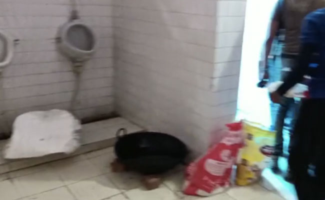 स्टेडियम में भोजन स्वीमिंग पूल परिसर में तैयार किया गया. वहां कच्चा राशन चेंजिंग रूम और शौचालयों में रखा गया था. वहीं, पर बाहर ईंटों का चूल्हा बनाकर भोजन तैयार किया गया. भोजन तैयार करने के बाद शौचालय में रखा गया. चावल की बड़ी परात और पूरियां कागज पर शौचालय के फर्श पर रखी थीं.