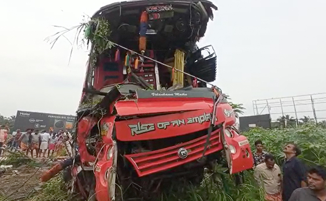 यह हादसा बुधवार रात करीब साढ़े 11 बजे हुआ, जब एक तेज रफ्तार निजी बस एक गाड़ी को ‘ओवरटेक' करने के प्रयास में केएसआरटीसी की बस से टकरा गई.
