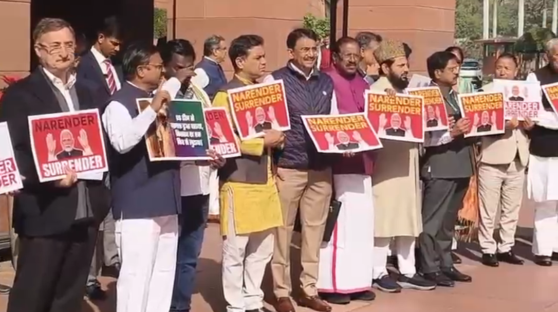 भारत-अमेरिका ट्रेड डील के विरोध में संसद के मकर द्वार पर विपक्षी सांसदों का प्रदर्शन जारी है. विपक्षी सांसद