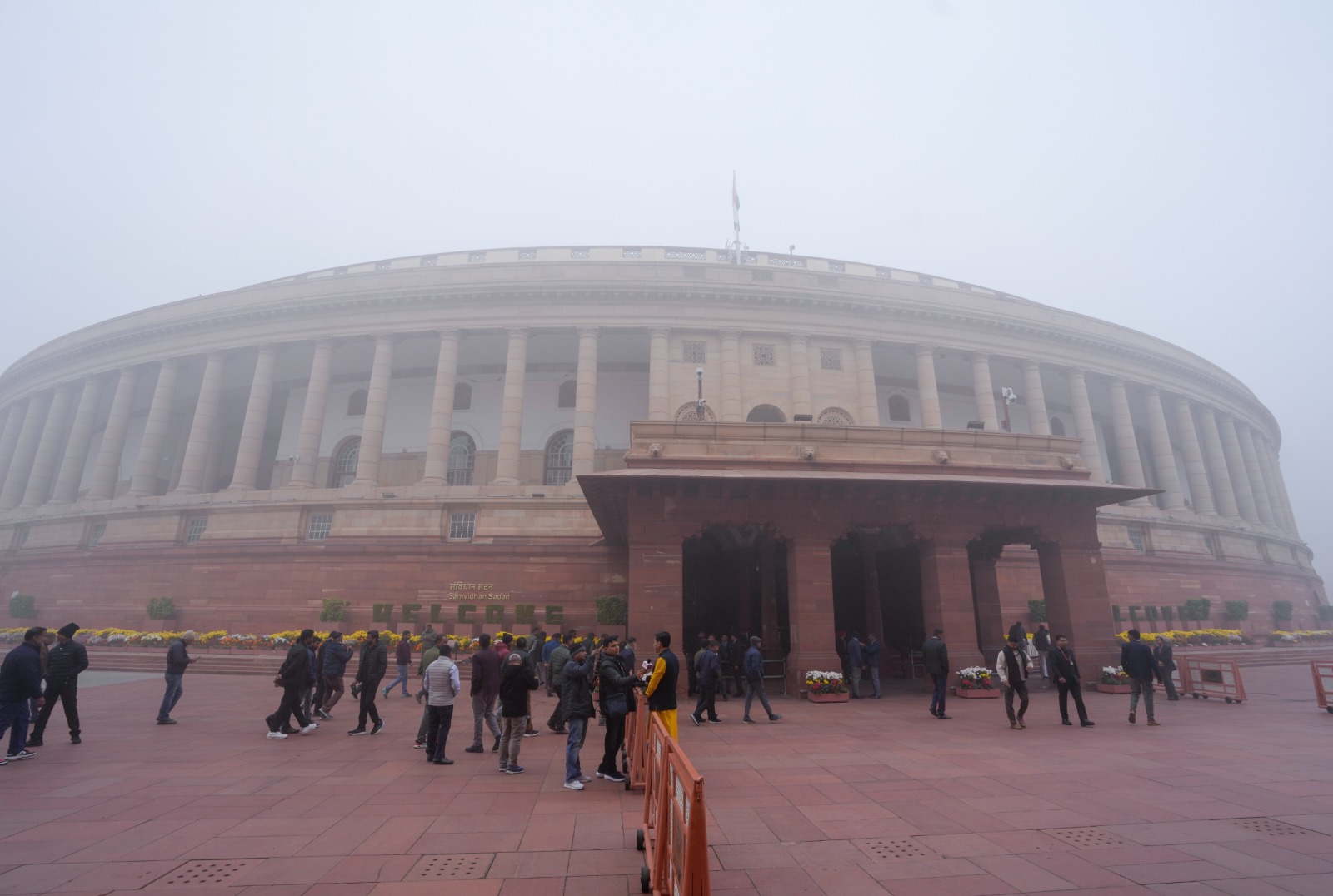कुहासे की चादर में लिपटा संसद भवन देखिए तस्वीर