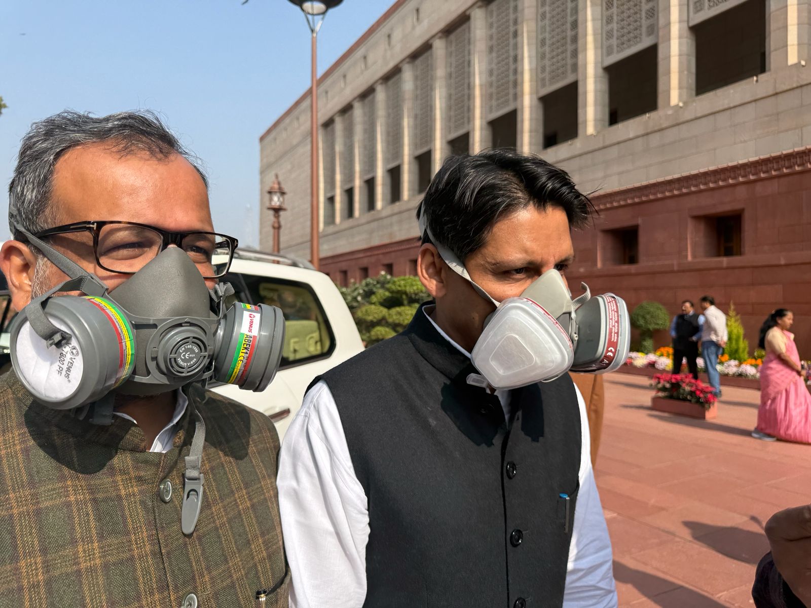बढ़ते प्रदूषण के विरोध में मास्क लगाकर संसद पहुंचे सांसद