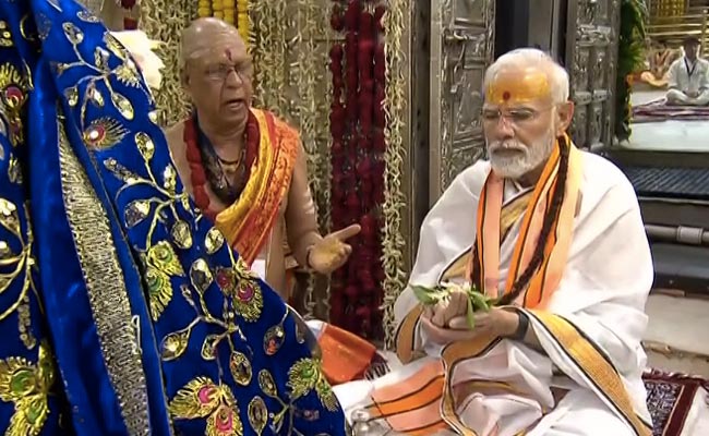 PM नरेन्द्र मोदी ने उज्जैन में महाकाल कॉरिडोर के पहले फेज का उद्घाटन किया. साथ ही पीएम ने महाकाल मंदिर में पूजा-अर्चना भी की. PM मोदी करीब छह बजे मंदिर के गर्भगृह में गए. उन्होंने पारंपरिक धोती पहन रखी थी और गमछा डाल रखा था. मध्य प्रदेश के मुख्यमंत्री शिवराज सिंह चौहान और केंद्रीय मंत्री ज्योतिरादित्य सिंधिया भी PM के साथ थे.