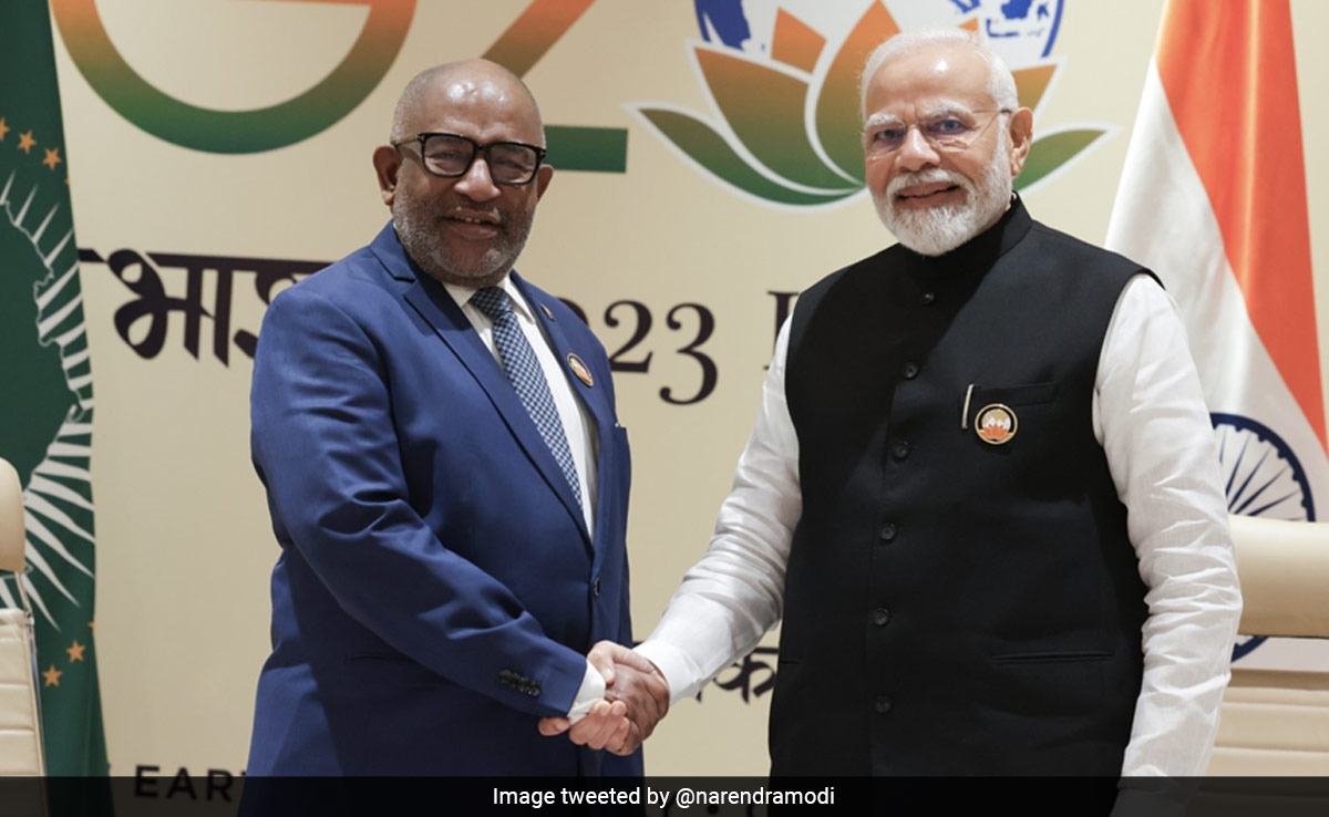 पीएम नरेंद्र मोदी ने शनिवार को कोमोरोस संघ के राष्ट्रपति और अफ्रीकी संघ (African Union) के अध्यक्ष अज़ाली असौमानी के साथ बैठक की. उन्होंने इस मौके पर अफ्रीकन यूनियन को जी20 में शामिल किए जाने पर बधाई दी. इस बैठक में व्यापार सहित अन्य क्षेत्रों में परस्पर सहयोग बढ़ाने पर चर्चा हुई.