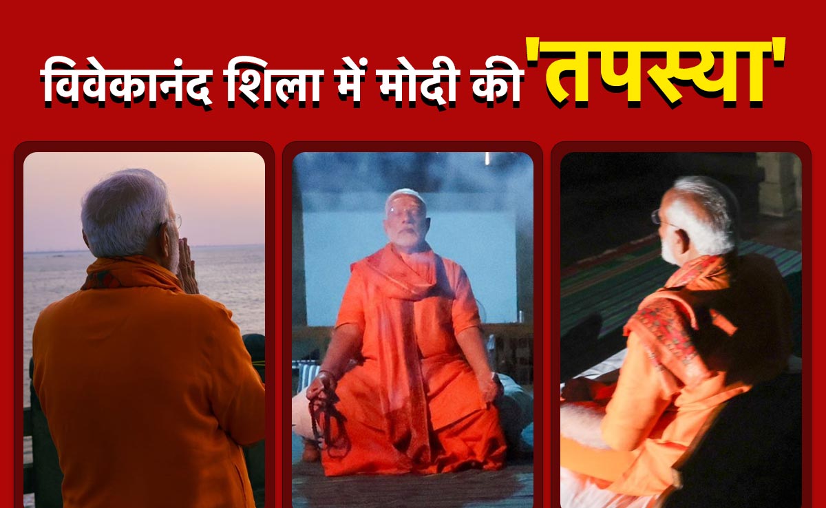 प्रधानमंत्री मोदी ने तिरुवनंतपुरम से हेलीकॉप्टर द्वारा पहुंचकर भगवती अम्मन मंदिर में पूजा की और नौका सेवा के जरिये रॉक मेमोरियल पहुंचे, यहां पहुंचकर उन्होंने ध्यान साधना शुरू की. पीएम मोदी की ध्यान साधना एक जून तक चलेगी.