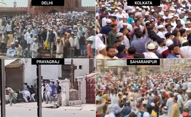 Prophet Comment Row : भारतीय जनता पार्टी (बीजेपी) की पूर्व नेता नूपुर शर्मा और नवीन कुमार जिंदल द्वारा पैगंबर पर की गई टिप्पणियों को लेकर आज दिल्ली और उत्तर प्रदेश के कई इलाकों में भारी विरोध प्रदर्शन किया गया. शुक्रवार की नमाज के बाद ये विरोध प्रदर्शन शुरू हुआ था.