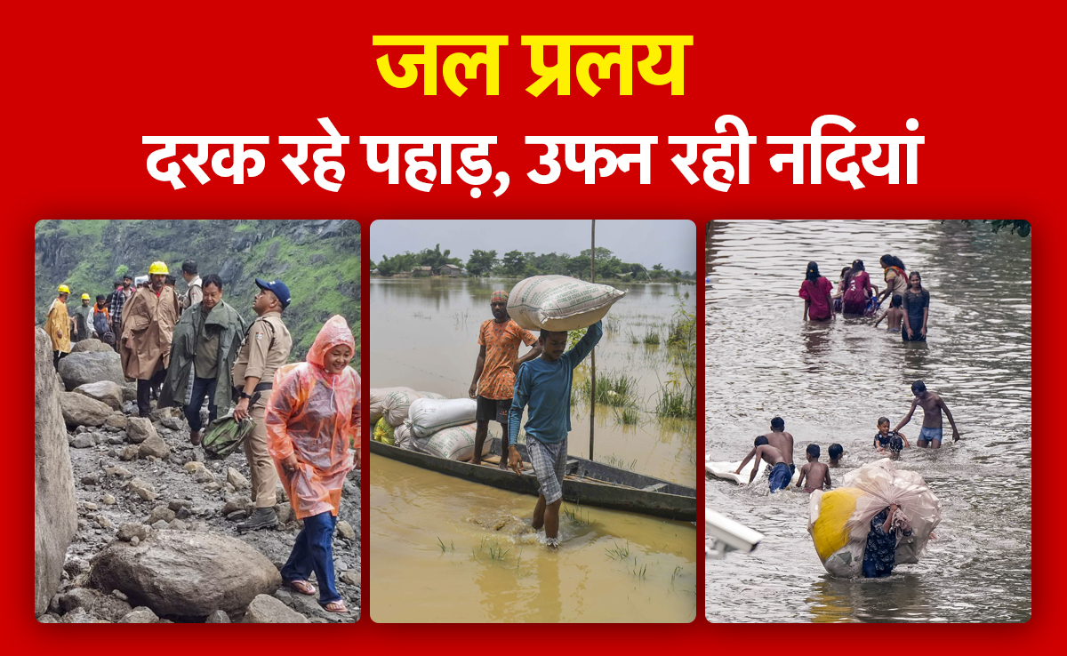 पहाड़ दरक रहे हैं, नदियां उफान पर हैं... देशभर के कई राज्यों में भारी बारिश के बाद हाहाकार मचा हुआ है. मुंबई पिछले भारी बारिश के कारण थम-सी गई है. असम में बाढ़ से हाहाकार मचा हुआ है और अबतक 66 लोगों की मौत हो चुकी है. उत्तराखंड में भारी बारिश के कारण हुए भूस्खलन के बाद कई जिलों का संपर्क अन्य जगहों से कट गया है. नेपाल और उत्तराखंड के बांधों से छोड़े गये लाखों क्यूसेक पानी ने उत्तर प्रदेश के तराई और मैदानी इलाकों में बाढ़ के रूप में कहर बरपाना शुरू कर दिया है. बिहार में पिछले 24 घंटों के दौरान लगातार बारिश से कोसी, महानंदा, बागमती, गंडक, कमला बलान और कमला सहित अन्य प्रमुख नदियां कई स्थानों पर खतरे के निशान से ऊपर बह रही हैं. दक्षिण पश्चिम मानसून की सक्रियता से देशभर में 'जल प्रलय' जैसे हालात हैं.