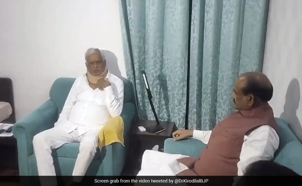 किरोड़ी लाल मीणा से आज लोकसभा अध्यक्ष ओम बिरला ने मुलाकात की. मीणा ने ट्वीट किया- ''आज लोकसभा अध्यक्ष श्री ओम बिरला जी दिल्ली आवास पर कुशलक्षेम पूछने पधारे. वीरांगनाओं के हक में आवाज उठाने के बदले स्वयं को गांधीवादी कहने वाले मुख्यमंत्री जी की पुलिस ने जान से मारने की कोशिश की. आप सबकी दुआओं और आशीर्वाद से बच गया.''
