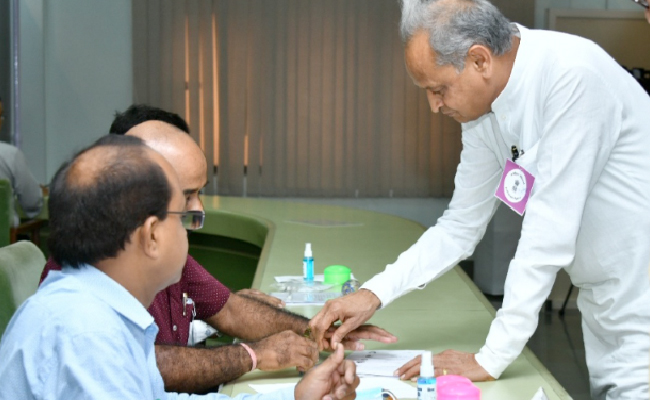 Rajya Sabha Election 2022: राजस्थान में सत्तारूढ़ कांग्रेस सरकार से नाराजगी जताने वाले बहुजन समाज पार्टी से कांग्रेस में आए विधायकों ने शुक्रवार को राज्यसभा चुनाव के लिए मतदान किया है. राजस्थान सीएम अशोक गहलोत कांग्रेस के तीन उम्मीदवारों में से एक रणदीप सुरजेवाला के साथ सुबह नौ बजे से पहले ही विधानसभा पहुंच गए थे. बसपा से कांग्रेस आए विधायक राजेंद्र गुढ़ा, संदीप यादव, वाजिब अली भी सीएम के साथ विधानसभा पहुंचे थे और अपने मताधिकार का प्रयोग किया. राजेंद्र सिंह गुढ़ा ने संवाददाताओं से कहा, "मुख्यमंत्री के वोट के बाद, मैंने दूसरे नंबर वोट डाला है." वहीं एक आधिकारिक प्रवक्ता ने बताया कि मतदान सुबह नौ बजे विधानसभा भवन में शुरू हुए और शाम चार बजे तक चलेंगे. जबकि मतगणना शाम पांच बजे शुरू होगी.