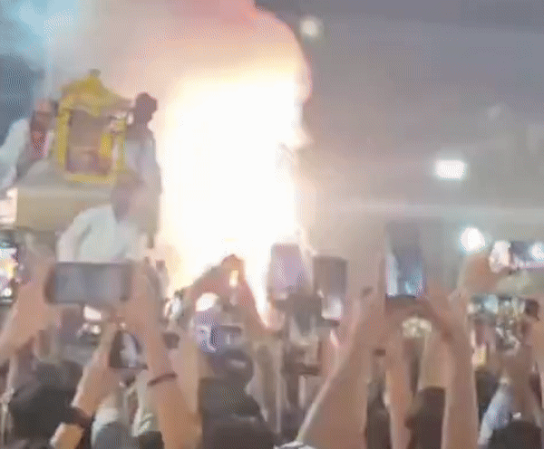 राजस्थान के कोटा शहर में रावण दहन के दौरान दशहरे मैदान में भगवान लक्ष्मी नारायण जी की सवारी जब पहुंची तो इस दौरान शोभायात्रा में शामिल एक हाथी पटाखे की आवाज से बेकाबू हो गया. बेकाबू होने पर वहां मौजूद भीड़ में भगदड़ सी मच गई. हालांकि किस्मत की बात ये रही कि हाथी पर सवार महावत ने उसको थोड़ी देर में ही काबू में कर लिया. सोशल मीडिया पर इस घटनाक्रम का वीडियो वायरल हो रहा है. तस्वीरों में आप देख सकते हैं कैसे हाथी के हल्का सा बेकाबू होने से भगदड़ सी मच गई. लोग इधर उधर भागने लगे. राहत की बात यह रही कि इस घटनाक्रम में कोई घायल नहीं हुआ लेकिन यह वीडियो सोशल मीडिया पर जमकर वायरल हो रहा है.