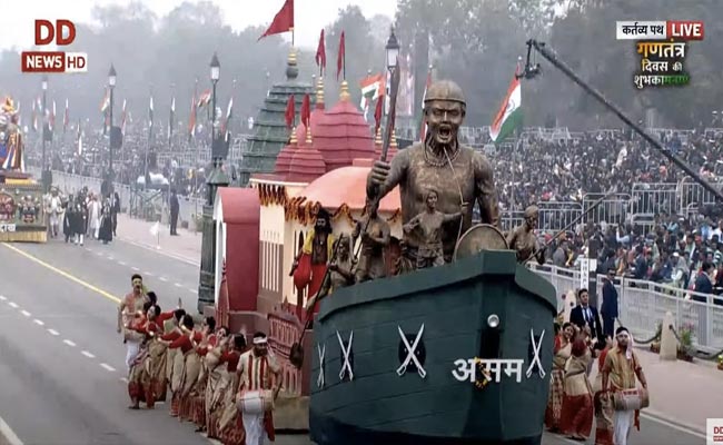 असम की झांकी में शिवसागर जिले के शिव डोल और रंग घर की प्रतिकृति को दर्शाया गया, जो आहोम साम्राज्य की शक्ति के प्रतीक के रूप में जाना जाता है,. झांकी के साथ पारंपरिक संगीत वाद्यों से सुसज्जित नर्तकों के दल ने बिहू नृत्य का प्रदर्शन किया.