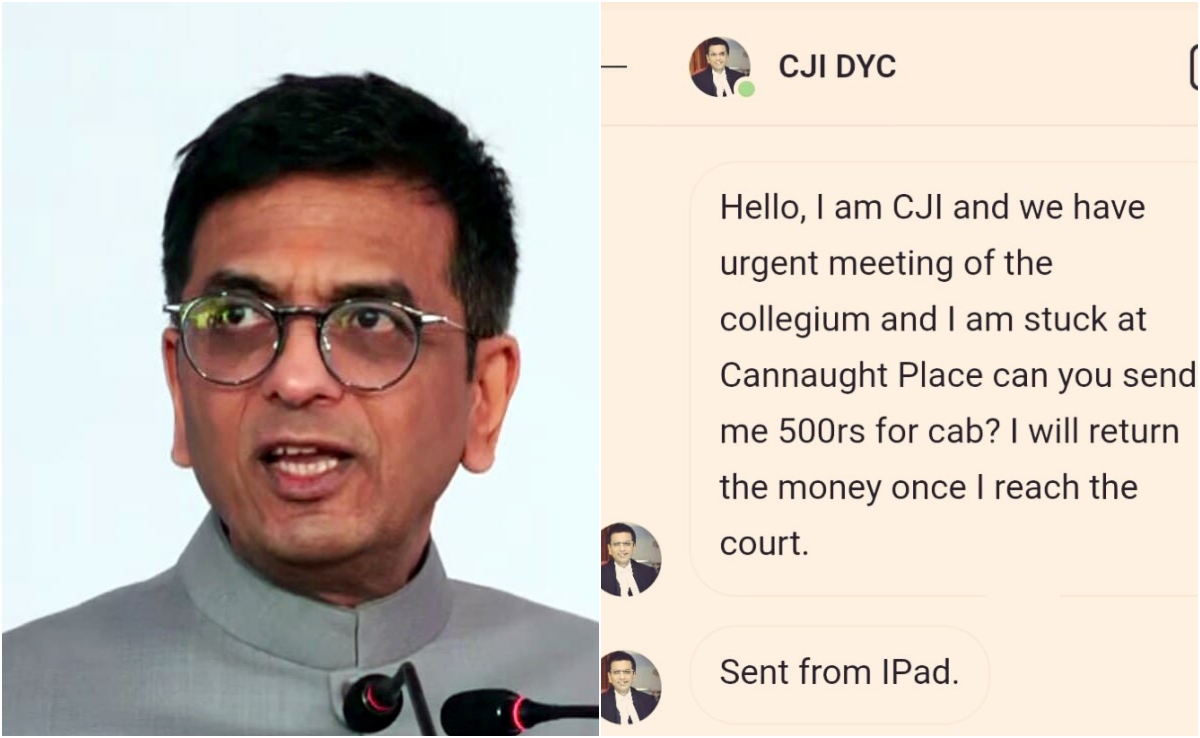मामला मंगलवार का है. एक स्कैमर ने मैसेज किया, "हैलो, में चीफ जस्टिस ऑफ इंडिया (CJI) हूं. कॉलेजियम के साथ हमारी एक इंपॉर्टेंट मीटिंग है. मैं कनॉट प्लेस में फंस गया हूं. क्या आप मुझे कैब के लिए 500 रुपये भेज सकते हैं? सुप्रीम कोर्ट पहुंचते ही मैं पैसे वापस कर दूंगा." मैसेज के आखिर ये भी बताया गया था कि इसे किस डिवाइस से भेजा गया है. स्कैमर ने लिखा- "सेंट फ्रॉम आइपैड."