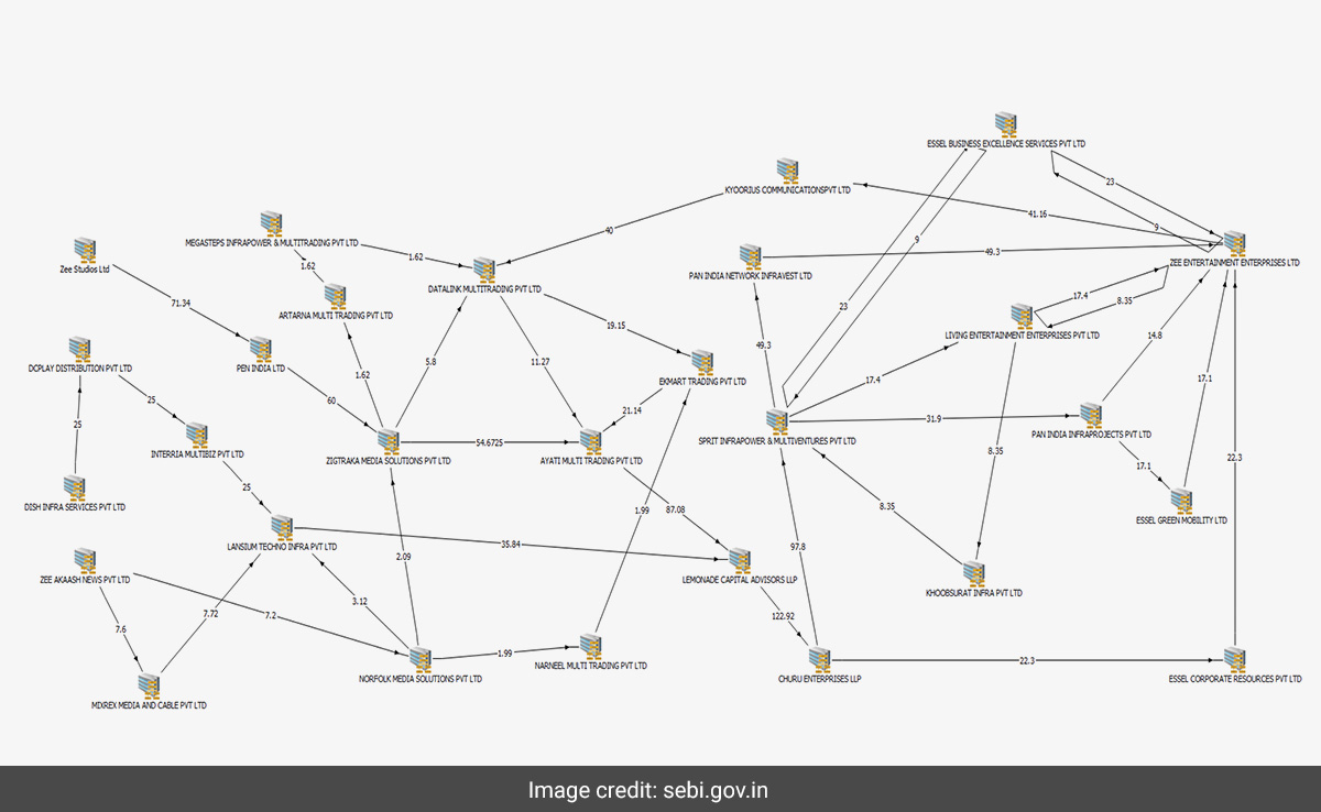 SEBI ने एक अंतरिम आदेश में चित्र और फ्लोचार्ट का इस्तेमाल कर दर्शाया है कि ज़ी एंटरटेनमेंट एंटरप्राइज़ेज़ लिमिटेड (ZEEL) और एसेल समूह की अन्य सूचीबद्ध कंपनियों से हासिल रकम को सुभाष चंद्रा के परिवार के स्वामित्व या नियंत्रण वाली कंपनियों के ज़रिये भेजा गया था. आखिरकार, इन रकमों को ZEEL को यह दिखाने के लिए वापस स्थानांतरित कर दिया गया कि उसकी सहयोगी कंपनियों ने कर्ज़ का भुगतान कर दिया है.